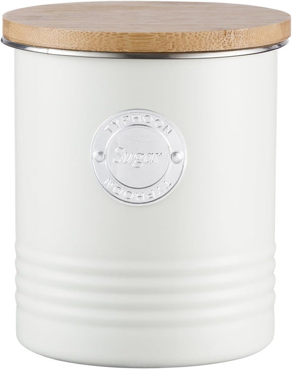 Living Collection, Sugar Bowl med lock | pastellkräm | Lagringsbox 1 L Sugar Kitchen | Stålbehållare för socker med lock | Bambu förvaringsburkar med lock