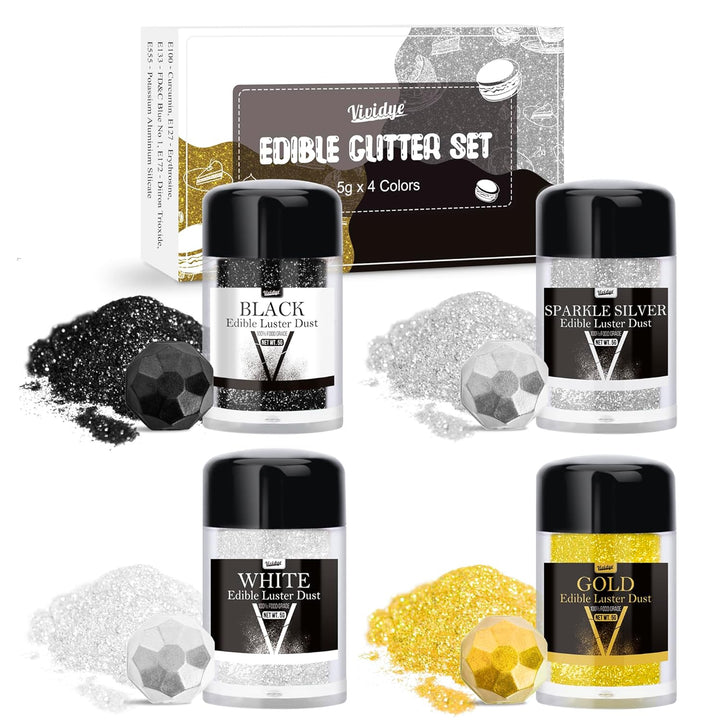 Vårt ätliga glitter av livsmedelskvalitet är vegan och utan allergener innehåller inte gluten, nötter eller mejeriprodukter och är därför säkert för alla att använda, oavsett dietbegränsningar eller matallergier. Kosher, Halal, HACCP och Vegan Certificate. Den innehåller inte socker eller smaker, och ser till att det inte förändrar matens smak eller struktur.