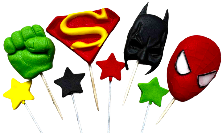 Uppsättningen innehåller 8 ätliga dekorationer från sockerpasta med dimensioner mellan 2 cm och 5,5 cm
